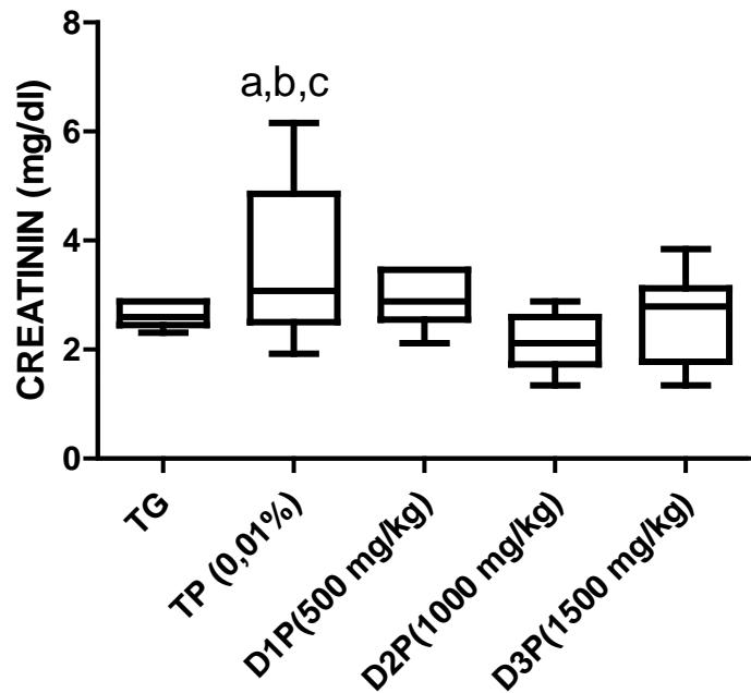 Regarding creatinine, FMP16 administration decreased creatinine levels in the treated groups (D1P, D2P, D3P) compared to the untreated and stressed group (TP) (Table 2). These results corroborate those of Sirag, (2009), Adedapo et al., (2009), Kane et al., 2022 who showed the protective effect of Pleurotus ostreatus and Moringa oleifera on kidney damage.