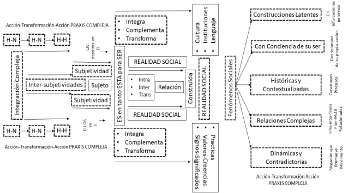 Siendo el fenómeno social, por tanto, una construcción latente, que es manifestada críticamente desde las intersubjetividades producidas en ese proceso, donde se han transformado desde las transformaciones aplicadas; no cosa replicada en sí misma, sino creación, expresada como conciencia, producto del conjunto de experiencias de transformación producida por la colectividad con la que sé que interactúa para reproducirse normalmente.