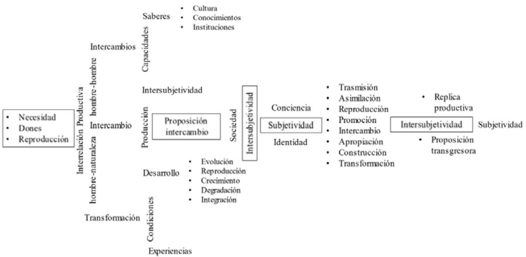 Al ser variadas las interrelaciones logradas, las subjetividades también son plurales, distinguiéndose una relación construida de otra, manifestándose en múltiples posibilidades de reproducción desde su propio desarrollo, que en algún momento histórico se unen, o bifurcan en otras de forma continua; además de sus saberes logrados, manifestándose en procesos culturales de disímil construcción, una de otra que no solo ayuda a una reproducción, sino también en desarrollo como parte de un conjunto de instituciones que se crearon para organizar, reproducir y desarrollar sus propias relaciones de desarrollo.