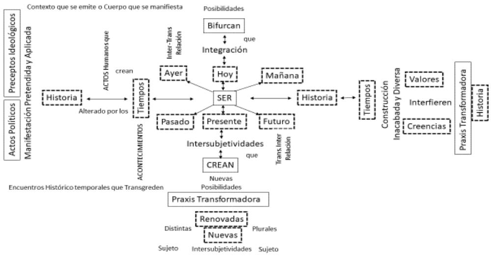 Y es en este proceso de construcción latente, donde se construye también el "ser" como actor social que se representa y expone sus logros en un "tiempo" necesario que manifiesta esta interrelación que no deja de hacerse constantemente.