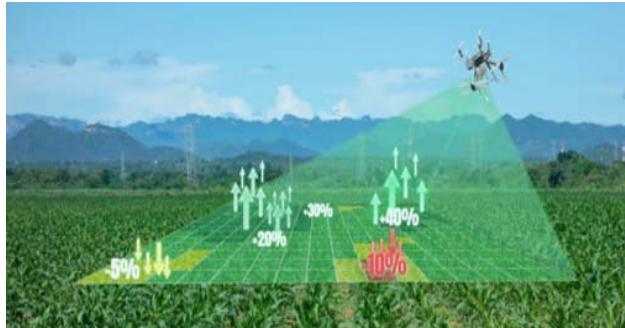 Unmanned aerial vehicles (UAVs) can get more precise data than satellites. Agri-tech software processes and transforms Data captured by drones into valuable information. In agriculture, drones equipped with sensors and cameras are used to image, map, and survey farms. Drones operate in combination with sensors and GPS. (Fig. 2) they can be remotely or automatically controlled using agriculture software-controlled flight plans in their embedded systems.