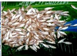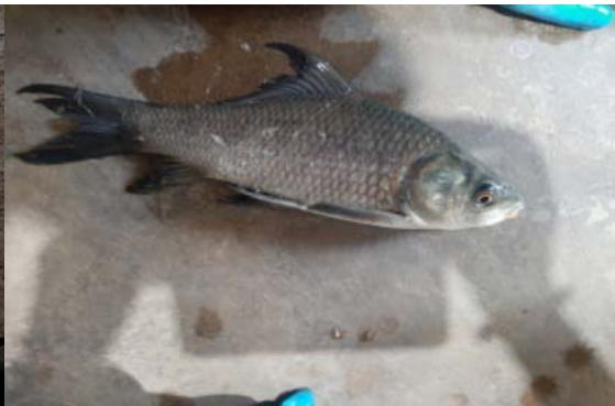 2. Silver body color with complete lateral line</td><td>VU</td></tr><tr><td>Gheso Rui</td><td>14. Ctenopharyngodon idella(Valenciennes, 1844)</td><td>1. Body colour Dark grey color body above, silvery on flanks and belly.