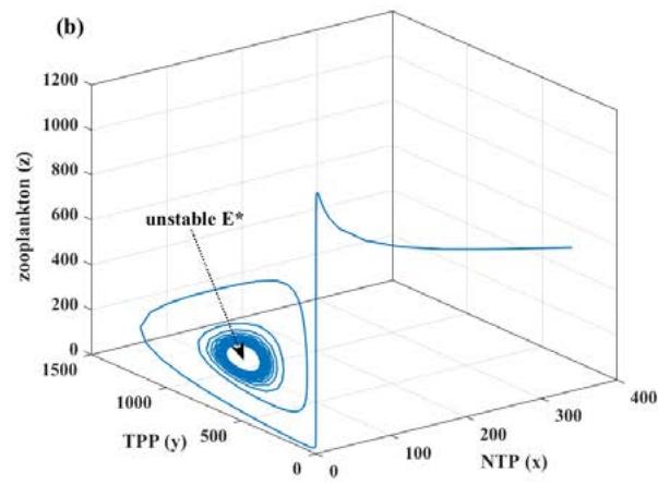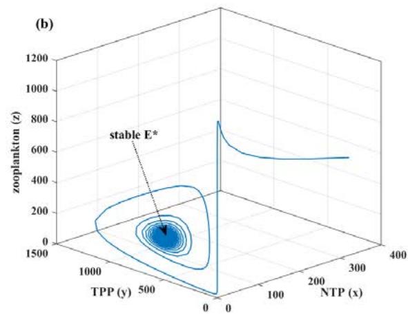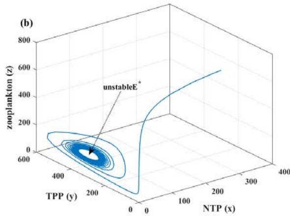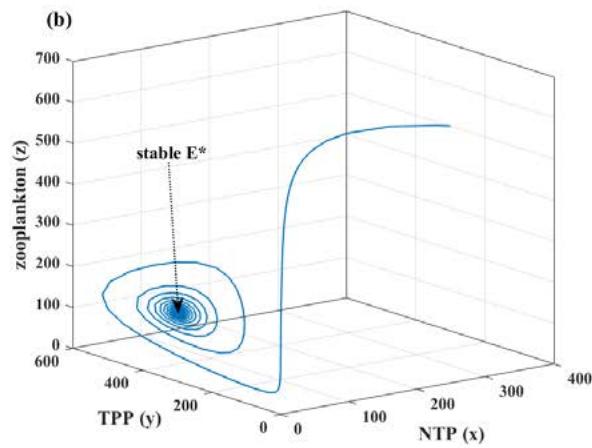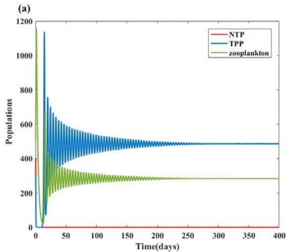 - (ii) TPP and zooplankton-free equilibrium, $E_{1} = (k_{1},0,0)$, which is always feasible;