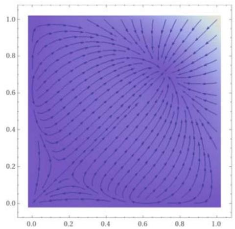 Figure 6: A complete picture of the phase portrait for the entire simplex.