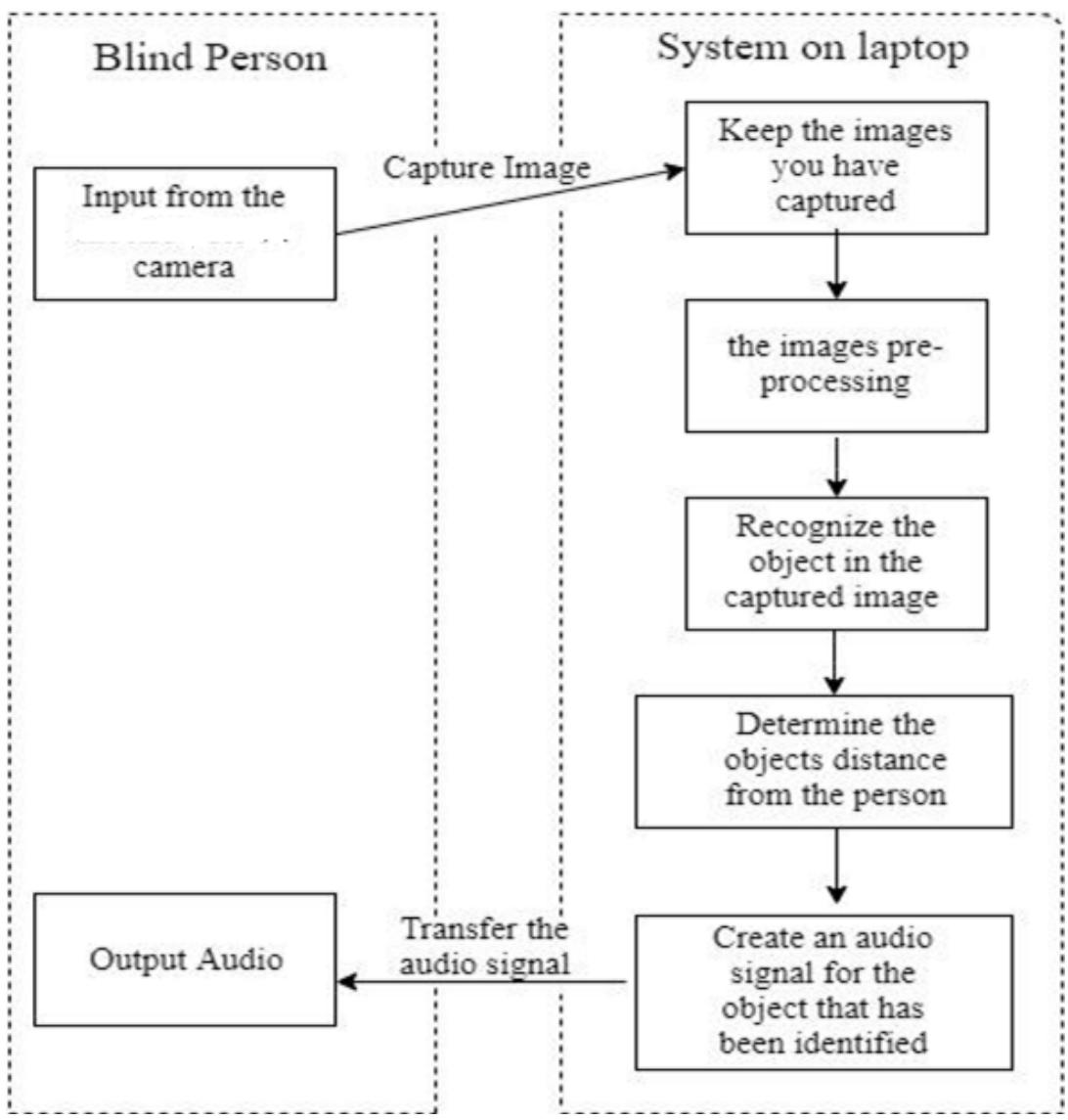 who are in desperate need of them. Using deep learning technologies, this paper suggested an object detection system for the blind. A voice guidance technique is also used to advise visually impaired people about the position of objects. The You Only Look Once (YOLO) technique is used in the object identification deep learning model, and a voice announcement is synthesized using text-to-speech (TTS) to make it easier for the blind to acquire information about items. As a result, it employs an effective object-detection system that aids the blind in locating objects within a given space.