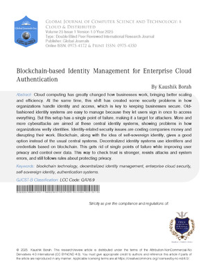 Cloud computing has greatly changed how businesses work, bringing better scaling and efficiency. At the same time, this shift has created some security problems in how organizations handle identity and access, which is key to keeping businesses secure. Oldfashioned identity systems are easy to manage because they let users sign in once to access everything. But this setup has a single point of failure, making it a target for attackers. More and more cyberattacks are aimed at these central identity systems, showing problems in how organizations verify identities. Identity-related security issues are costing companies money and disrupting their work. Blockchain, along with the idea of self-sovereign identity, gives a good option instead of the usual central systems. Decentralized identity systems use identifiers and credentials based on blockchain. This gets rid of single points of failure while improving user privacy and control over data. This way to check trust is stronger, resists attacks and system errors, and still follows rules about protecting privacy.