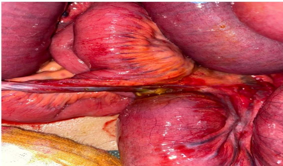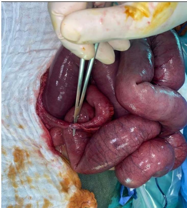 Figure 3: Meckel's diverticulum adhering to the abdominal wall