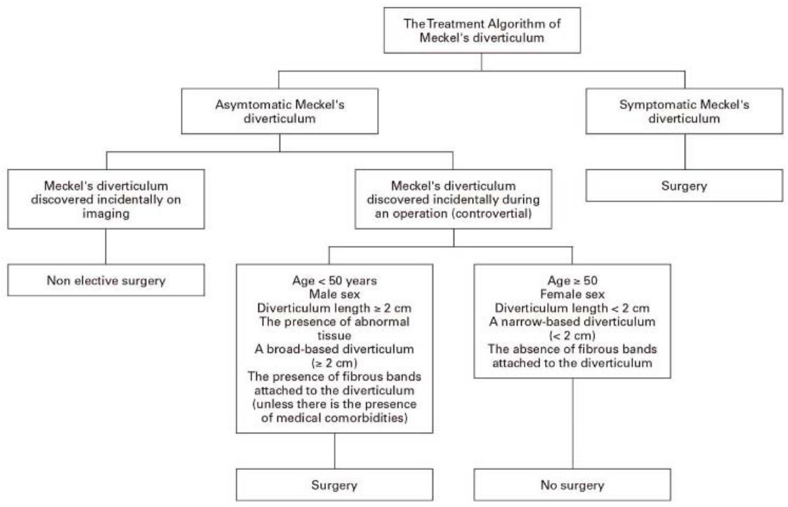 The treatment for Meckel's diverticula is shown in this algorithm (8):