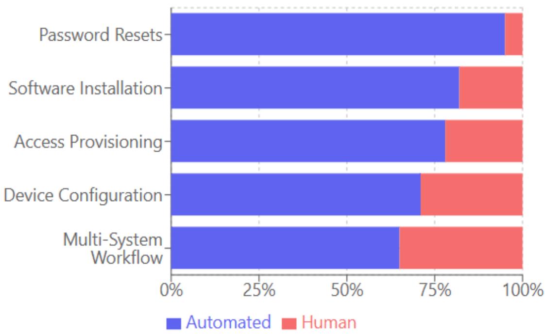 Agentic AI transforms the service desk from a reactive support channel into a proactive solution provider. The system can autonomously execute routine tasks such as password resets, software installations, access provisioning, and system configurations based on established policies and approval workflows. According to the comprehensive analysis published by Hughes Systique, the evolution of agentic systems in enterprise environments follows a distinct maturity model comprising five developmental stages: task automation, process orchestration, contextual decision- making, predictive intervention, and autonomous optimization. Their research, based on implementations across 37 Fortune 500 companies, demonstrates that organizations achieve transformative results at each progressive stage, with the most advanced implementations demonstrating what they term "operational hyper-efficiency." Organizations reaching stage three (contextual decision-making) reported an average $73\%$ reduction in mean time to resolution for routine IT requests, while those achieving stage five (autonomous optimization) experienced an additional $58\%$ improvement in resolution metrics. The study particularly highlights the remarkable capabilities of fully developed agentic systems in handling complex provisioning workflows, with one documented case study of a multinational financial institution reducing user onboarding time from 14.7 days to just 47 minutes while simultaneously decreasing configuration errors by $94\%$. Their analysis further quantifies the economic impact, with enterprise deployments averaging $3.4 million in annual operational savings through reduced support costs, improved employee productivity, and decreased system downtime [7]. This automation extends to complex scenarios involving multiple systems and approval chains, where the AI coordinates actions across different platforms while maintaining audit trails and compliance requirements.