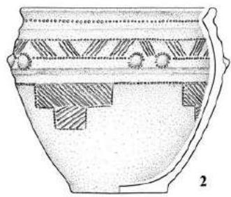 Large graves had two burial chambers located one over the other. The lower chamber contained bodies of the buried in a crouched position on a side, accompanied by grave goods (Fig. 1). The predominant posture of the buried is on the left side, with knees bent and hands joined at the face. There are also a few recorded secondary burials, where the body of the deceased was originally in another place, and after clearing from the flesh, the bones were collected and placed in the grave (Fig. 4.2). In some cases, those bones were in a disorderly assemblage, while in others they were given an anatomically correct placement imitating a crouched position.