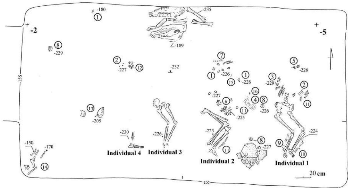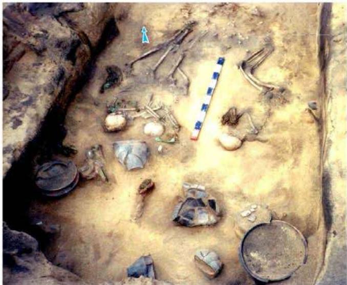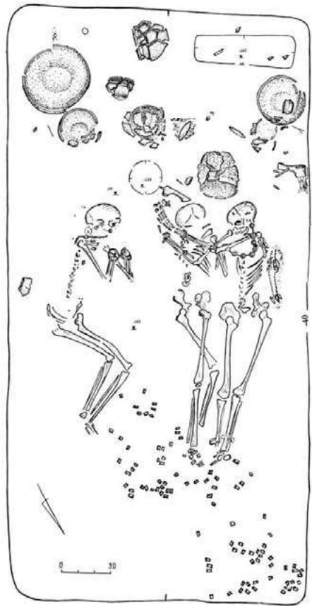 Numerous burials were robbed in antiquity. The study of the taphonomy of burials suggests that robberies were carried within a short period, most likely by the same population. In many cases, only the upper part of the skeleton of the buried person was disturbed, while the legs and grave goods remained in situ (Fig. 2). Most likely, grave robberies were not mercenary in nature, but part of rituals that reflected fear of death and the dead.