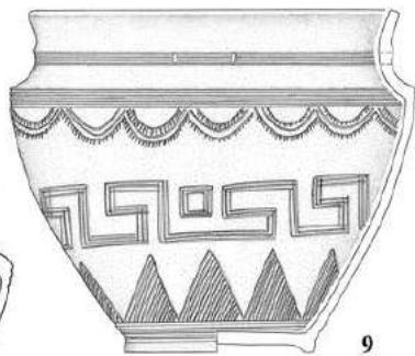 10 Fig. 7: Decorated ceramic vessels: 1-3, 6 - Sintashta culture, Stepnoye 1 cemetery; 4-5, 8-9 - Petrovka culture, Stepnoye VII cemetery; 7, 10 - Alakul' culture, Stepnoye VII cemetery