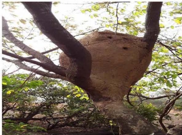 Figure 1: Traditional Honey Bee Hive in Clay Mud (Left) and Hollowed-out Tree Trunks (Right) in the District of Keru (Benin).