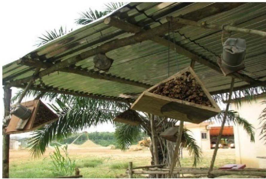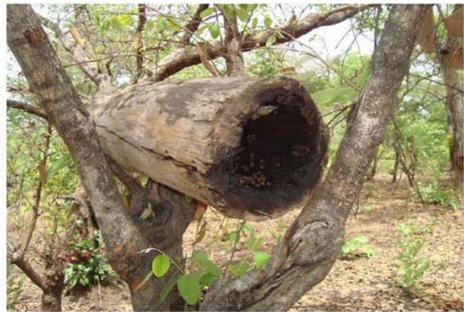 Alongside this problematic system, beekeeping and melliponiculture with actively kept hives are very old in the regions of Atacora, Borgou and Zou. The materials used for this purpose are hives made of clay, jars, or hollowed-out tree trunks (figure 1). These traditional hives are set high in the trees that the owner harvest in the dry season (Ahouandjinou et al., 1997; Paraizo et al., 2012). The system of hives with removable combs set by a beekeeper who works with a smoker and bee suit is recent and started only in 1972 (Botoyiye, 1999). The average size of apiaries is five hives, dominated by traditional hives made in jars, and sometimes in plastic cans and Kenyan top bars hives. A few professional beekeepers in the departments of Zou, Borgou and Donga have apiaries with more than 50 Kenyan, or frame hives, the colonies of which are obtained by trapping hives, fragmenting colonies or rarely by queen rearing.