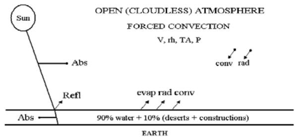 Fig. 1: Planet's representation showing the Earth's surface and the atmosphere without cloud cover (open atmosphere)