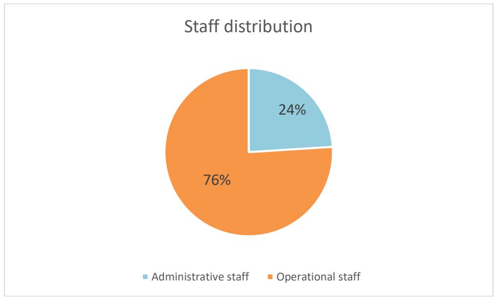 Of the company's 42 employees, $24\%$ (10 employees) correspond to administrative personnel and $76\%$ (32 employees) to operational positions that perform tasks in the quarry and crushing plant.