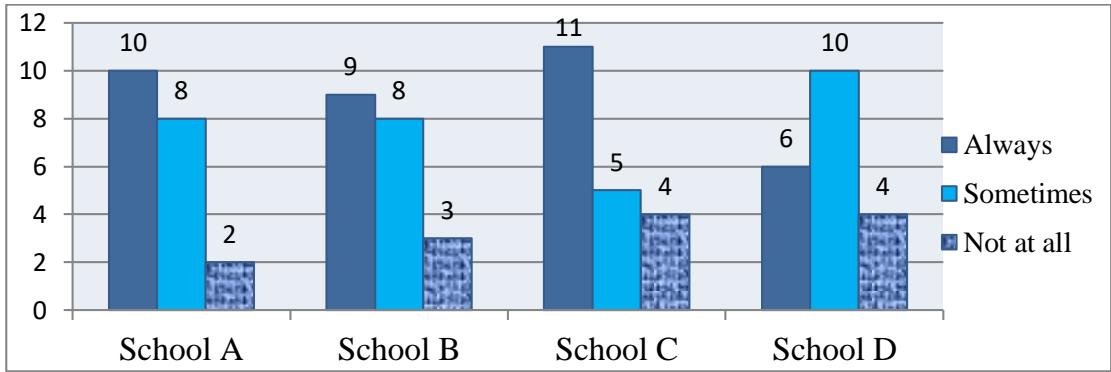 Furthermore, these exercises provided Garo students with valuable opportunities to engage in authentic English contexts, enhance their self-assurance, and develop a deeper understanding of the English language. Role-playing exercises were often conducted in pairs or small groups, while storytelling activities not only enriched their emotional intelligence but also expanded their vocabulary and exposed them to new language structures. Additionally, storytelling promoted a sense of satisfaction and harmony among students, encouraging them to express their thoughts and emotions more freely. Furthermore, group tasks played a significant role in improving Garo students' English language skills by facilitating authentic discussions, which are crucial for language acquisition. These group discussions also contributed to the development of critical thinking skills among Garo students, encouraging them to inquire and actively listen to others' responses regularly d. Home-school Collaboration