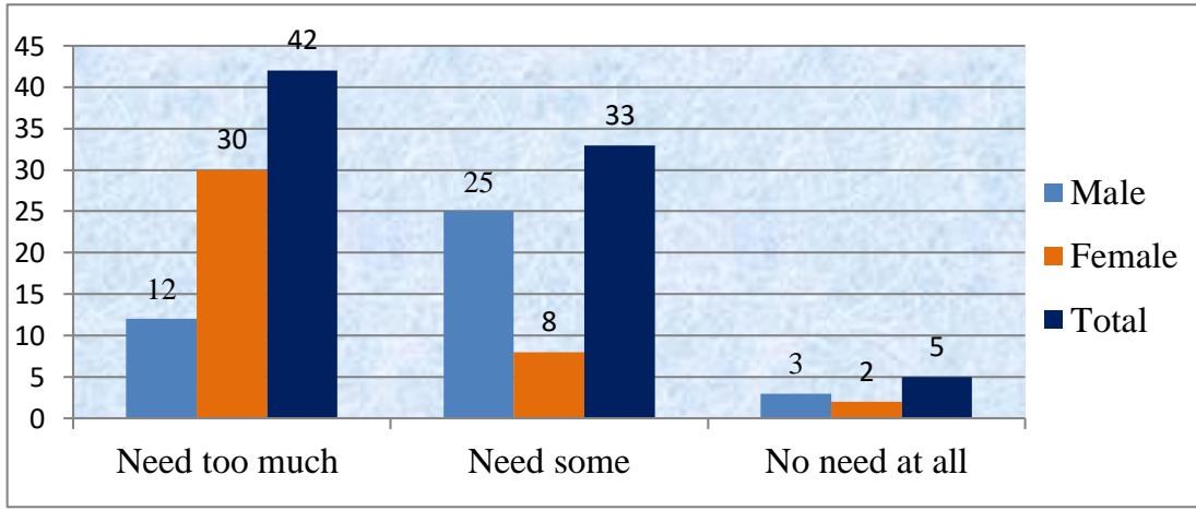 [^32]: students prioritize English for their future jobs, with females showing somewhat higher interest. About $43.75\%$ require moderate skills, yet $16.25\%$ believe English is unnecessary, which is a worry to resolve. Cultural standards may lead some students to regard English as superfluous owing to physical labor requirements. _(p.9)_