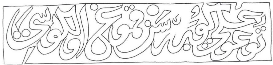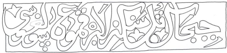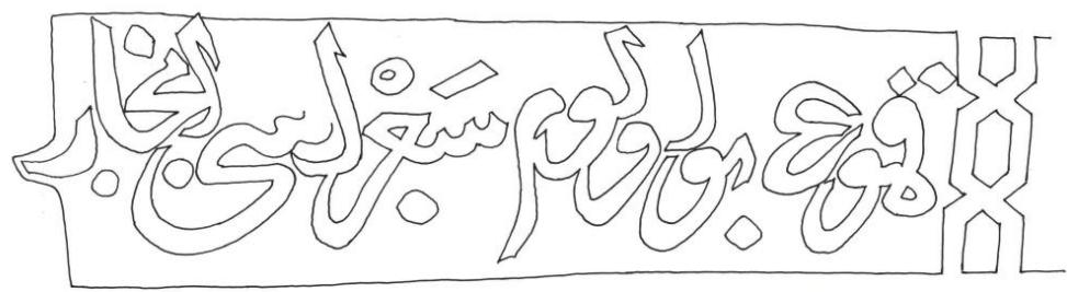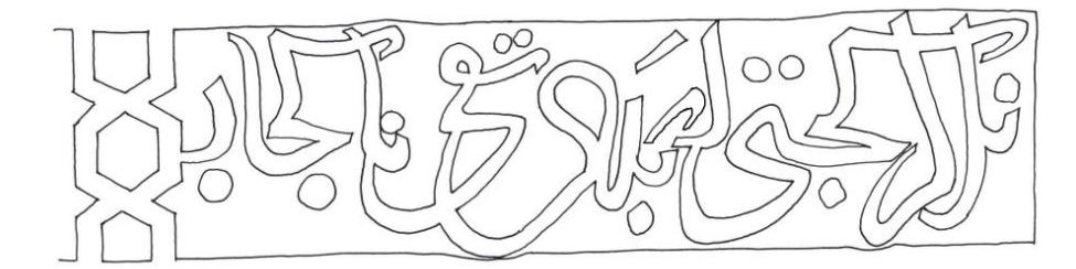 Текст написан уверенной рукой резчика и хаттата (калиграфа) в одном лице, который обладал хорошими знаниями, навыками и чувством художественного вкуса. Как правило, такие мастера имели опыт работы в различных сферах творчества: в ювелирном деле, в книжном искусстве, в калиграфии, в деревообработке и т.п. Строки отделены между собой пустой полосой, что создает определенный порядок.