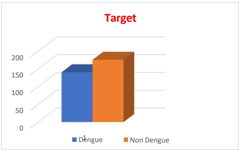 The target value consists of 140 cases of dengue infected and 146 non-dengue cases among 286 cases. The distribution is shown in Fig.6