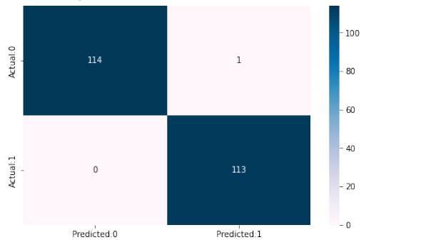 <table><tr><td>precision</td><td>recall</td><td>f1-score</td><td></td></tr><tr><td>0</td><td>1.00</td><td>0.99</td><td>1.00</td></tr><tr><td>1</td><td>0.99</td><td>1.00</td><td>1.00</td></tr></table>