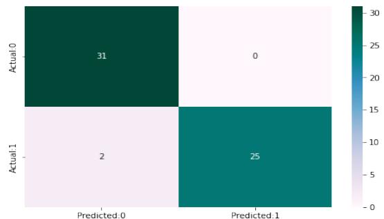 <table><tr><td>Classifier</td><td>Testing Dataset</td><td>Training Dataset</td></tr><tr><td>Auc_Nb</td><td>0.9629</td><td>0.9514</td></tr><tr><td>Auc_Knn</td><td>0.8333</td><td>0.9342</td></tr><tr><td>Auc_Svc</td><td>0.9444</td><td>0.9956</td></tr><tr><td>Auc_Xgb</td><td>0.9714</td><td>0.9781</td></tr><tr><td>Auc_Rf</td><td>0.9814</td><td>0.9914</td></tr><tr><td>Auc_Scv</td><td>0.9814</td><td>0.9868</td></tr></table>