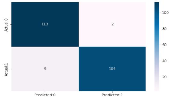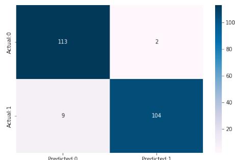 <table><tr><td></td><td>precision</td><td>recall</td><td>f1-score</td></tr><tr><td>0</td><td>0.93</td><td>0.98</td><td>0.9</td></tr><tr><td>1</td><td>0.98</td><td>0.92</td><td>0.95</td></tr></table>