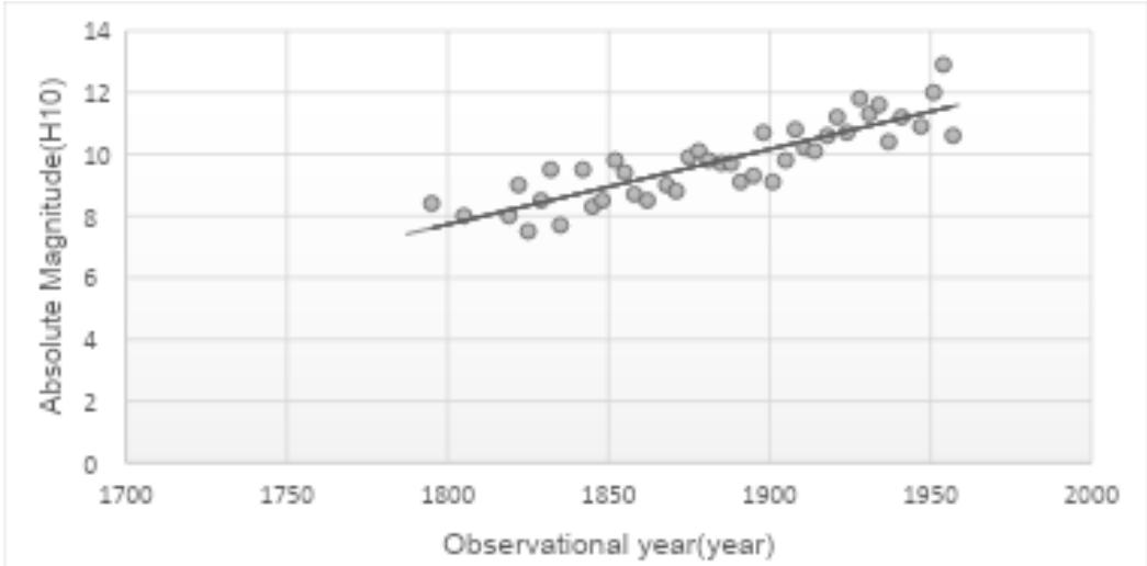The variation of absolute magnitude of the comet in duration from AD 1786 to AD 1957 is presented in Fig 1 [11].