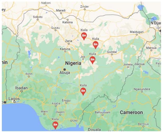Fig. 3: Location of Kula in the Nigerian map. (Pacheco Pereira, 1505-1520)