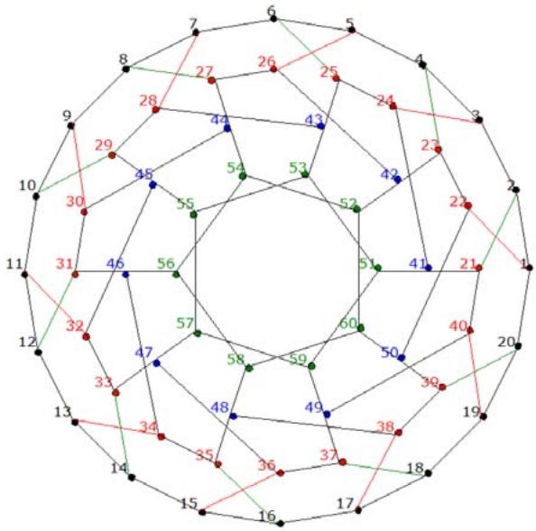 Using the previous algorithm we generate the truncated icosahedral graph as shown in Figure 6.