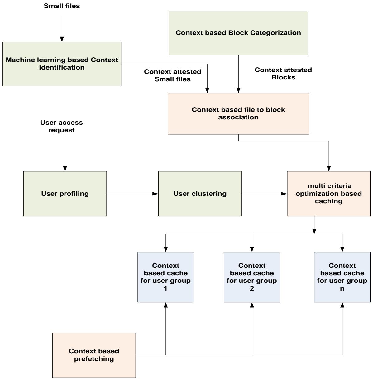 Personalized Access: User can be clustered based on their content access patterns over a temporal duration and multiple caches can be maintained for each user group. Also the cache item management can be based on multi criteria optimization instead of LRU mechanisms. The items to pre-drop can be identified based on context associated with files. By this way access speed up can be increased and optimized specific to each user group.
