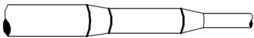 Figura 1: Tubería telescópica (diámetro variable), diámetros, 0.1 m, 0.05 m y 0.01 m, de izquierda a derecha.