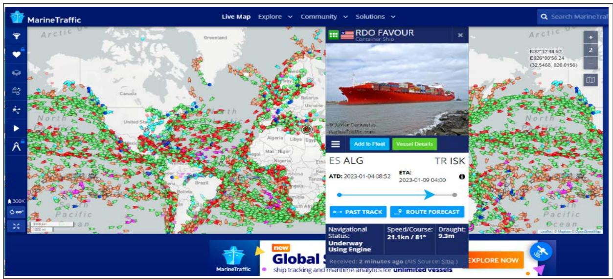 Figure 17: Ships' Data from Satellite Captures (Marine Traffic, 2023)