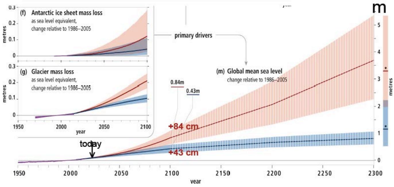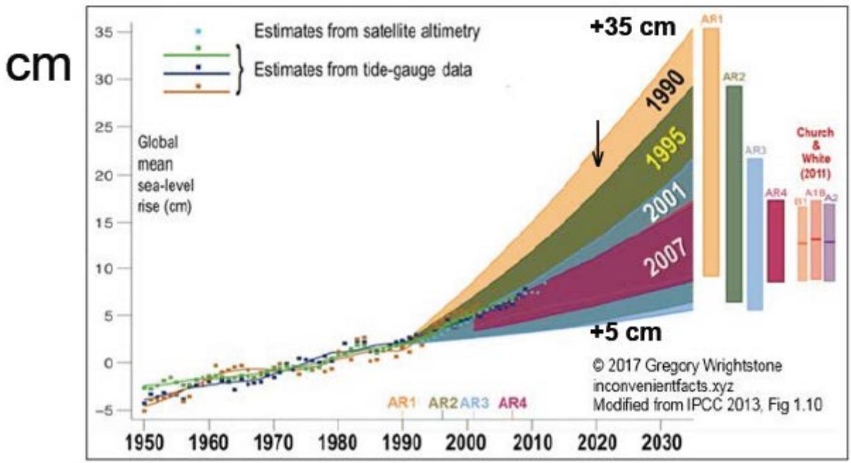 $+35$ cm in year 2035 (Fig. 2) is not anymore included in the forecast; the current forecast is $+43 - 84$ cm for 2100—while the 2300 forecast is $+(85 \pm 25)$ to $+(550 \pm 130)$ cm