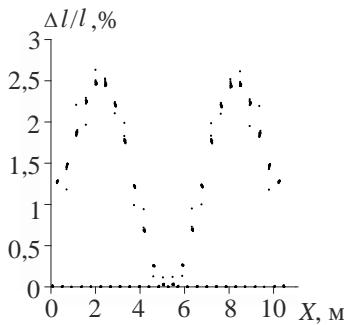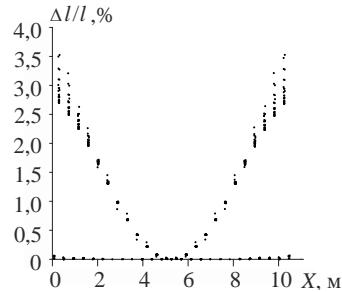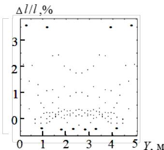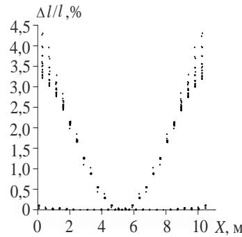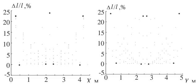 The diagram of $\Delta l / l$ for the "rigid" transformation scheme of the truss is shown in Fig. 25.
