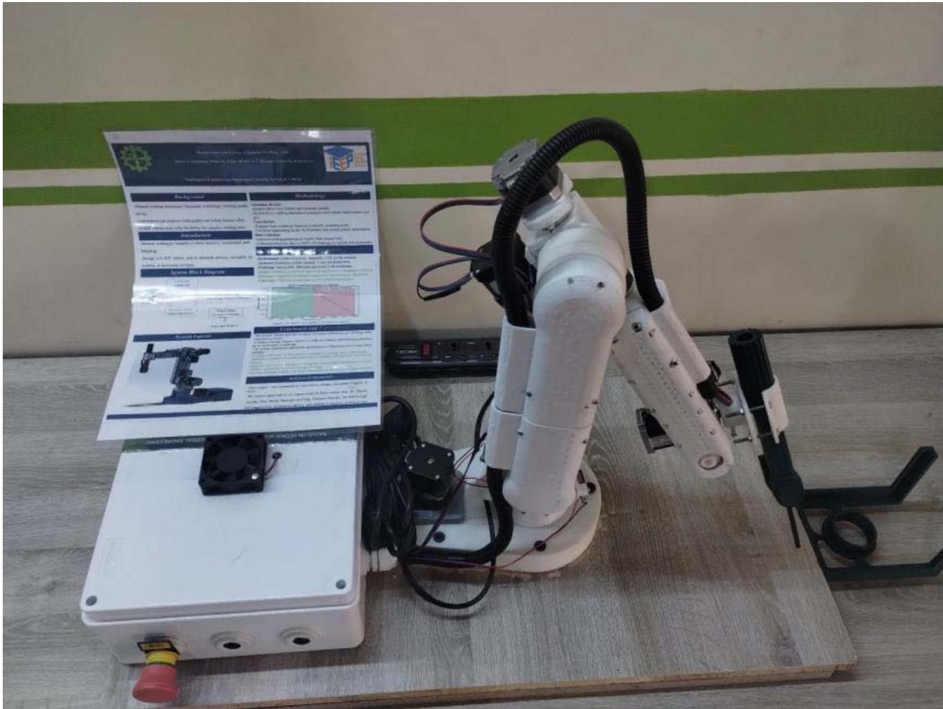 This study successfully detailed the design, development, and preliminary validation of a small-scale, low-cost autonomous robotic arc welding kit specifically engineered for horizontal fillet and butt joints. The system was conceived to bridge the gap between manual welding's affordability and the high precision of industrial robotic cells, making automation accessible for SMEs, training institutes, and field repair operations.