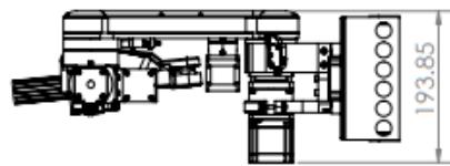 A custom-designed, water-cooled torch mount was fabricated from 6061 aluminum to hold a standard Arc welding holder. The mount incorporated a DC geared motor with an integrated magnetic encoder to provide holder angle adjustment (± $15^{\circ}$ from vertical), crucial for optimizing weld bead profile on horizontal fillets.