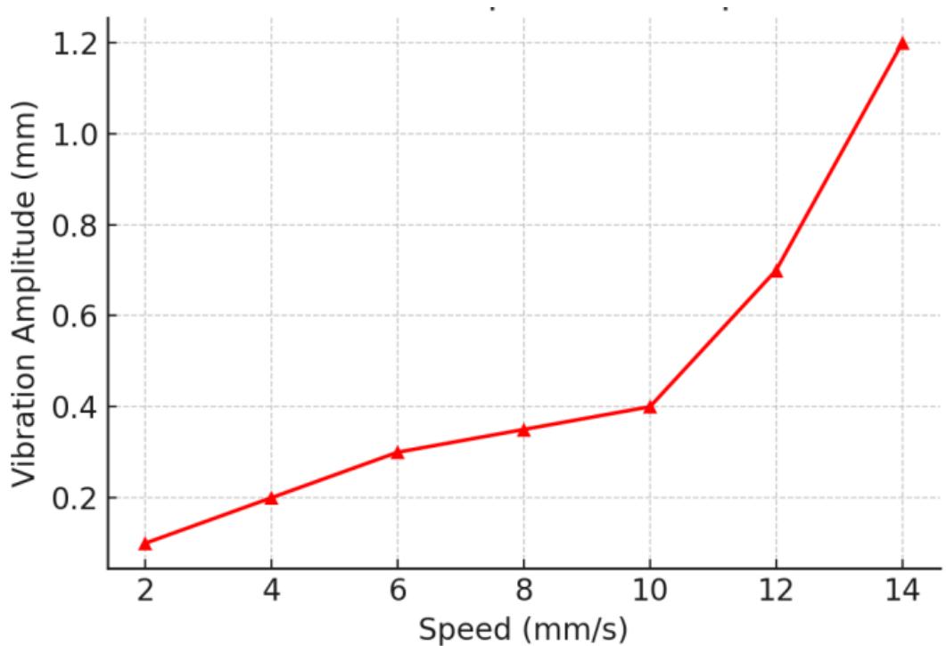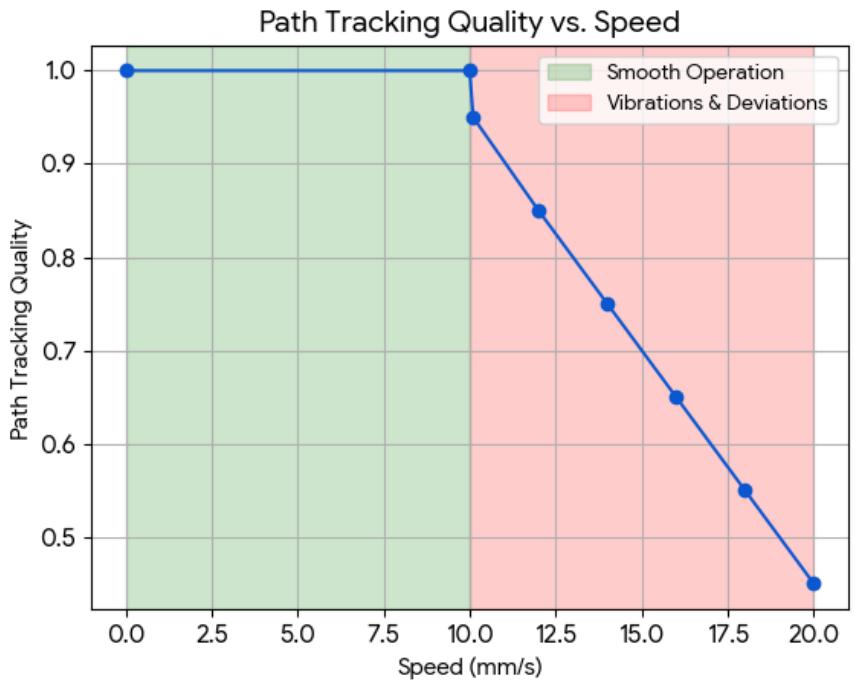 2. Speeds beyond $10\mathrm{mm / s}$ caused increased overshoot and oscillations at start/stop points due to inertia and control lag.