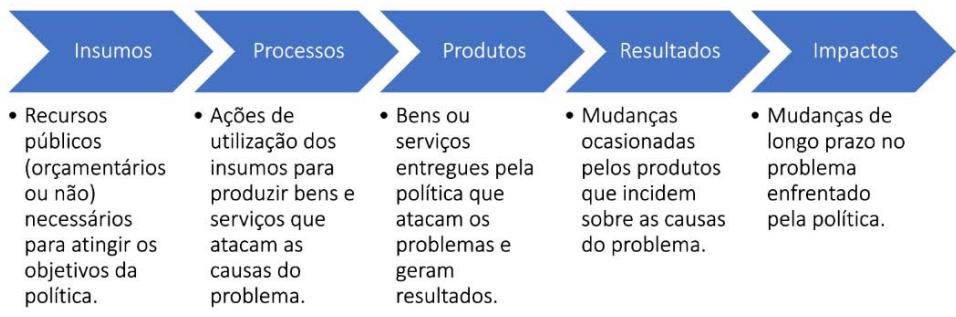 detalhar as etapas e resultados esperados com a intervenção a ser realizada pela ação ou ações estatais propostas por determinada política. O modelo permite a visualização desse processo de forma didática e clara e estabelece um nexo causal entre as etapas da política.