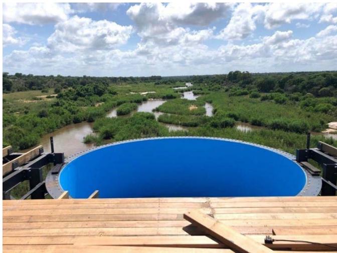 - The elevation above a pristine riverine environment required very specific measures to be put in place to mitigate items dropping or blowing into the riverbed. Retrieval of items requires an armed SANParks guard to accompany the clean-up team.