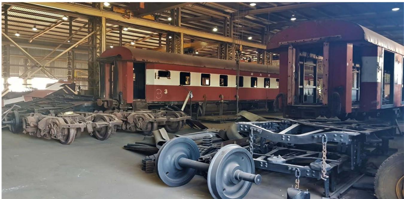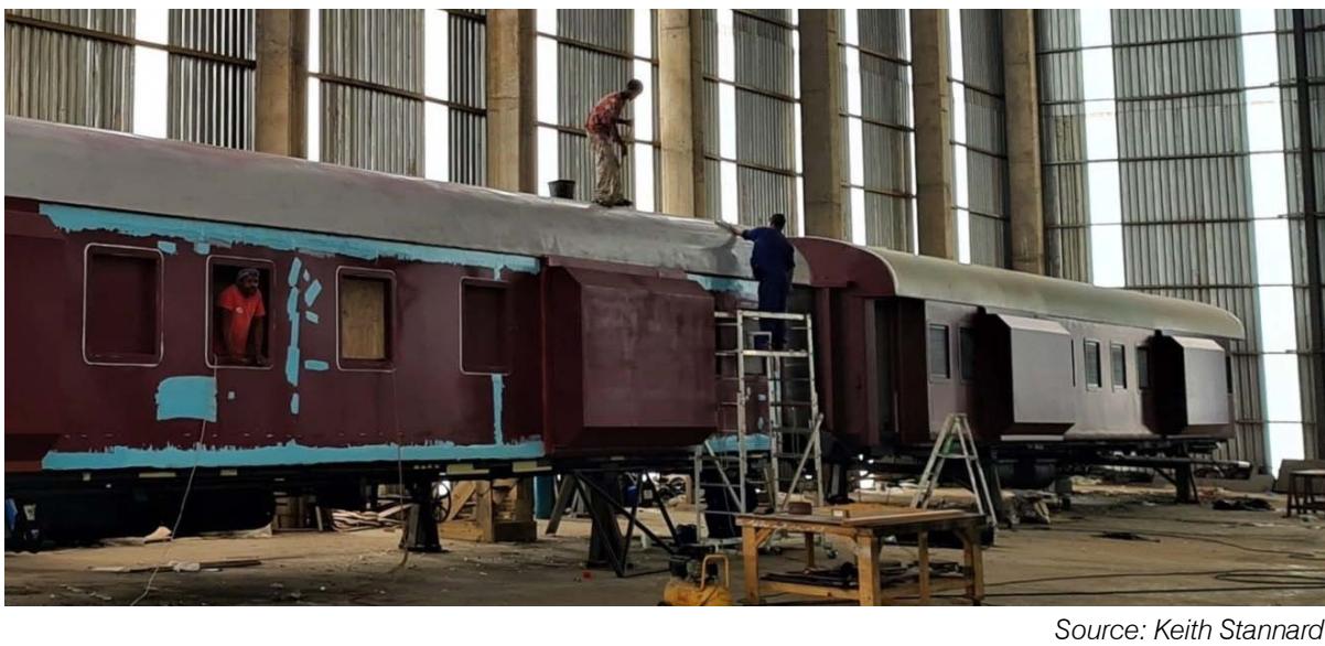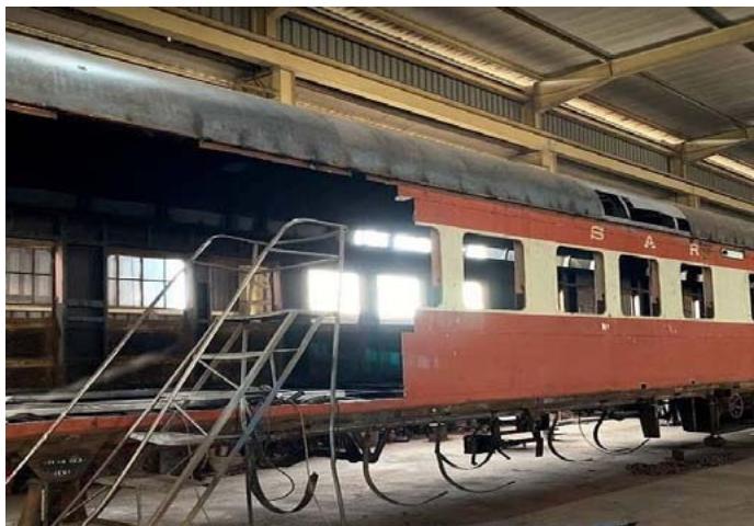A Special Purpose Vehicle (SPV) company was assembled as a Joint Venture (JV) to undertake this project under a lumpsum contract. The 2 individual principals making up this JV were former government officials working in the railway environment, with a keen interest in rail-related developments. As such, they kept track of rolling stock in shunting yards around South Africa and had become aware of such a yard in the town of Ladysmith in Kwazulu Natal Province, just $400\mathrm{km}$ southeast of Johannesburg. This yard held approximately 30 carriages in various states of repair.