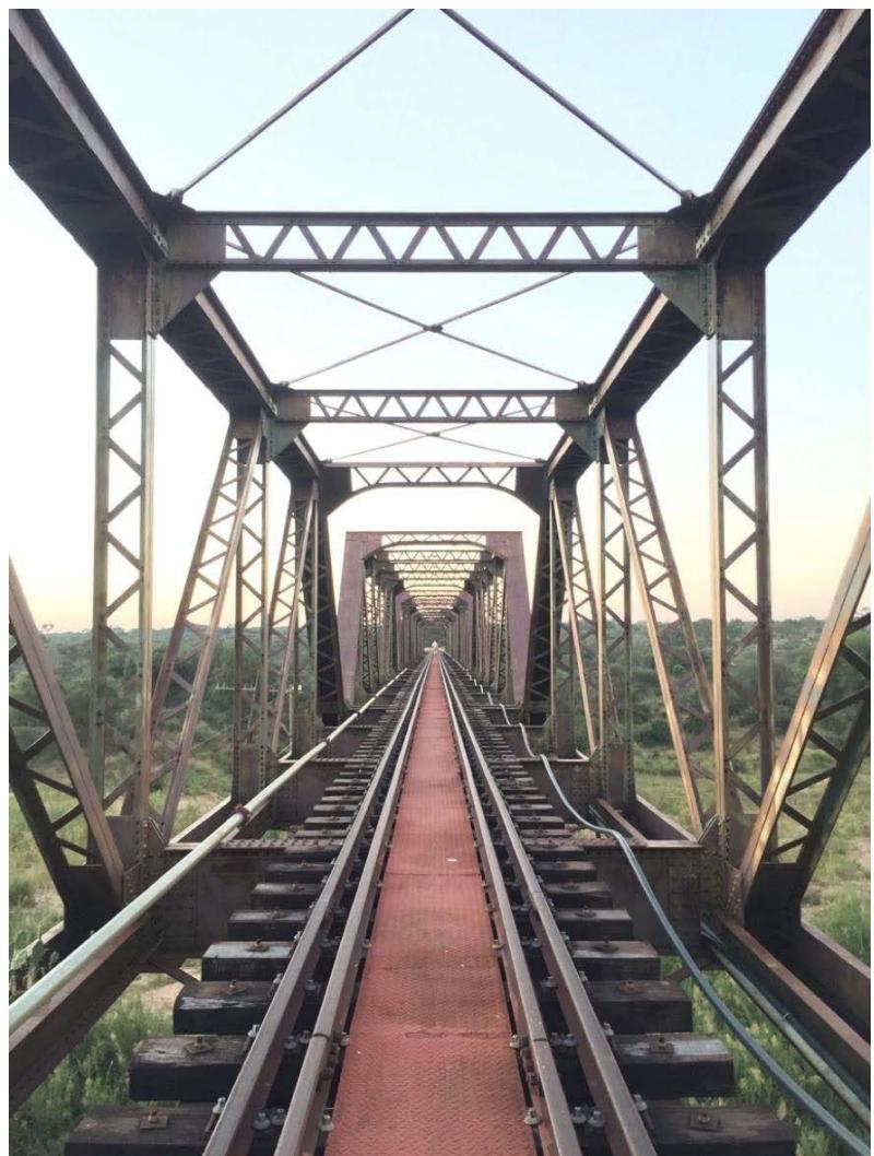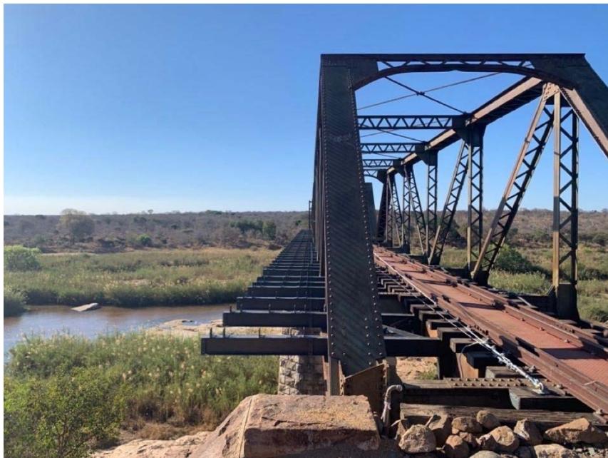 The 400-meter-long single line bridge dates from 1910, and consists of repeating steel-arched sections that span between 9 sandstone piers. It is a very early example of modular construction, wherein the steel sections were made in the United Kingdom and transported by sea and overland to the site before being craned into position on the locally built piers. The bridge has sweeping views and stands approximately 15 meters above the Sabie River, which is known for its crocodiles, hippos, buffaloes, and elephants. In addition, the area boasts abundant bird life.