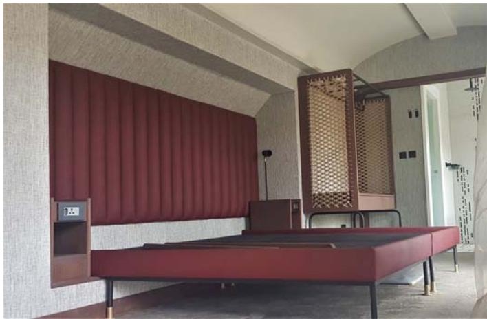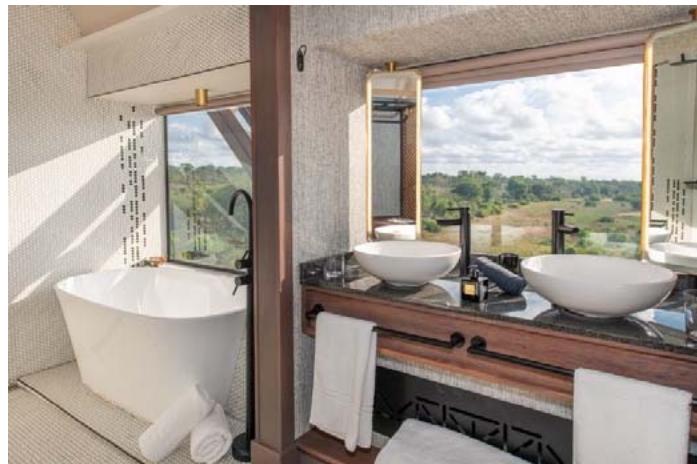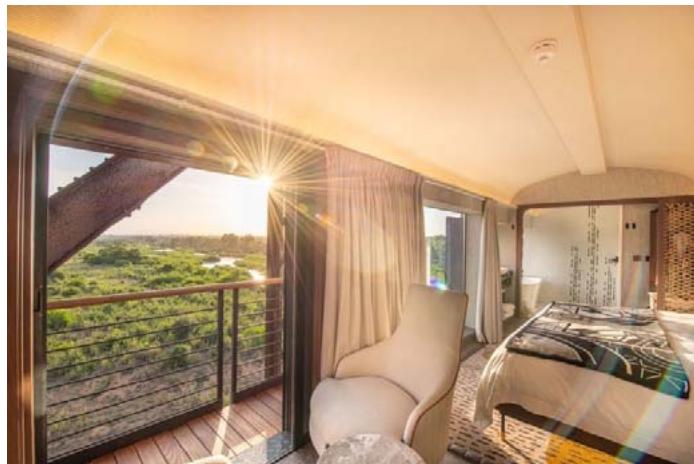 The carriages were refurbished and transported complete with their hard furnishings. As explained, most of the loose fittings, furniture, and soft case goods were transported separately to a warehouse in Skukuza for set-up in the carriages on the bridge to reduce the risk of damage during transportation. These were installed by the hotel pre-opening team before the carriages were winched to their final position. This helped to increase their understanding of, involvement in, and commitment to the hotel.