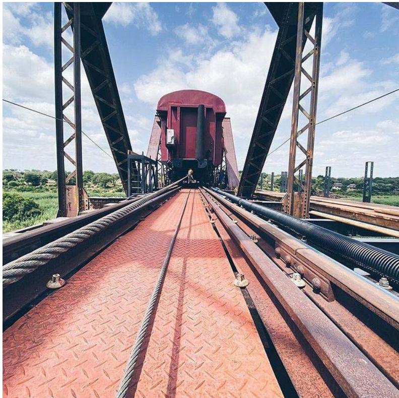 1. Sourcing old railway carriages in South Africa and refurbishing these in two close-by Johannesburg factories; then transporting them by road to mount them on railway tracks and move them into permanent positions on the bridge.