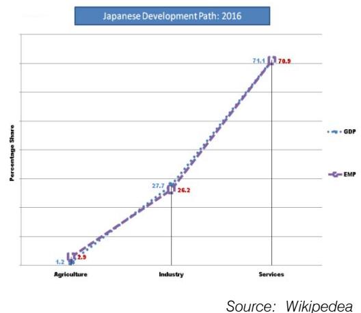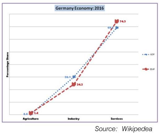 America's Employment and GDP composition has been shown which is near to factor price equalization in all sectors. Germany, Japan (Figure: 6 and7) have the same composition. These economies are moving on the correct development path.