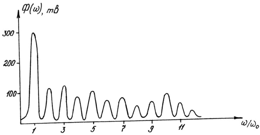Рис. 8: Спектр електричного сигналу, що знимаеться з фотоприймача при скануванні п периодів синусодальной структури спектру анализованого газу