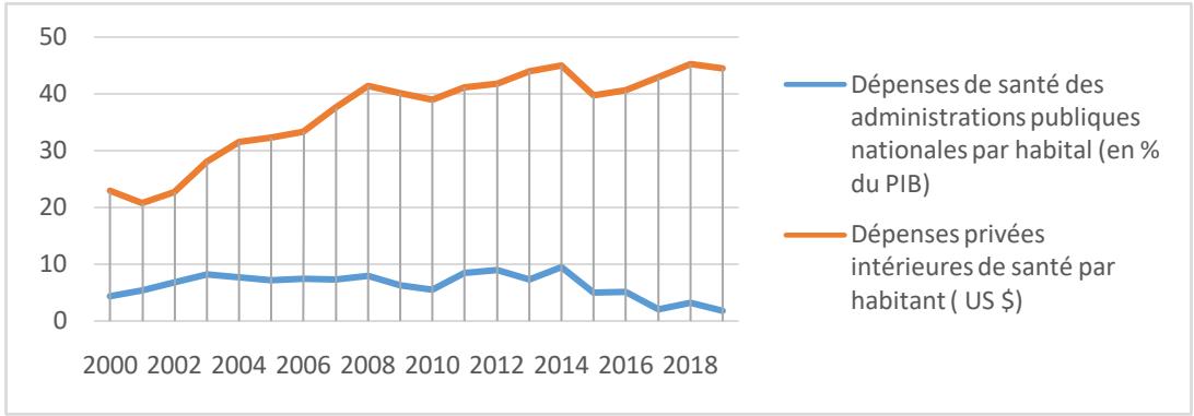 Figure 1: Evolution des dépenses de santé au Cameroun (2000-2019)