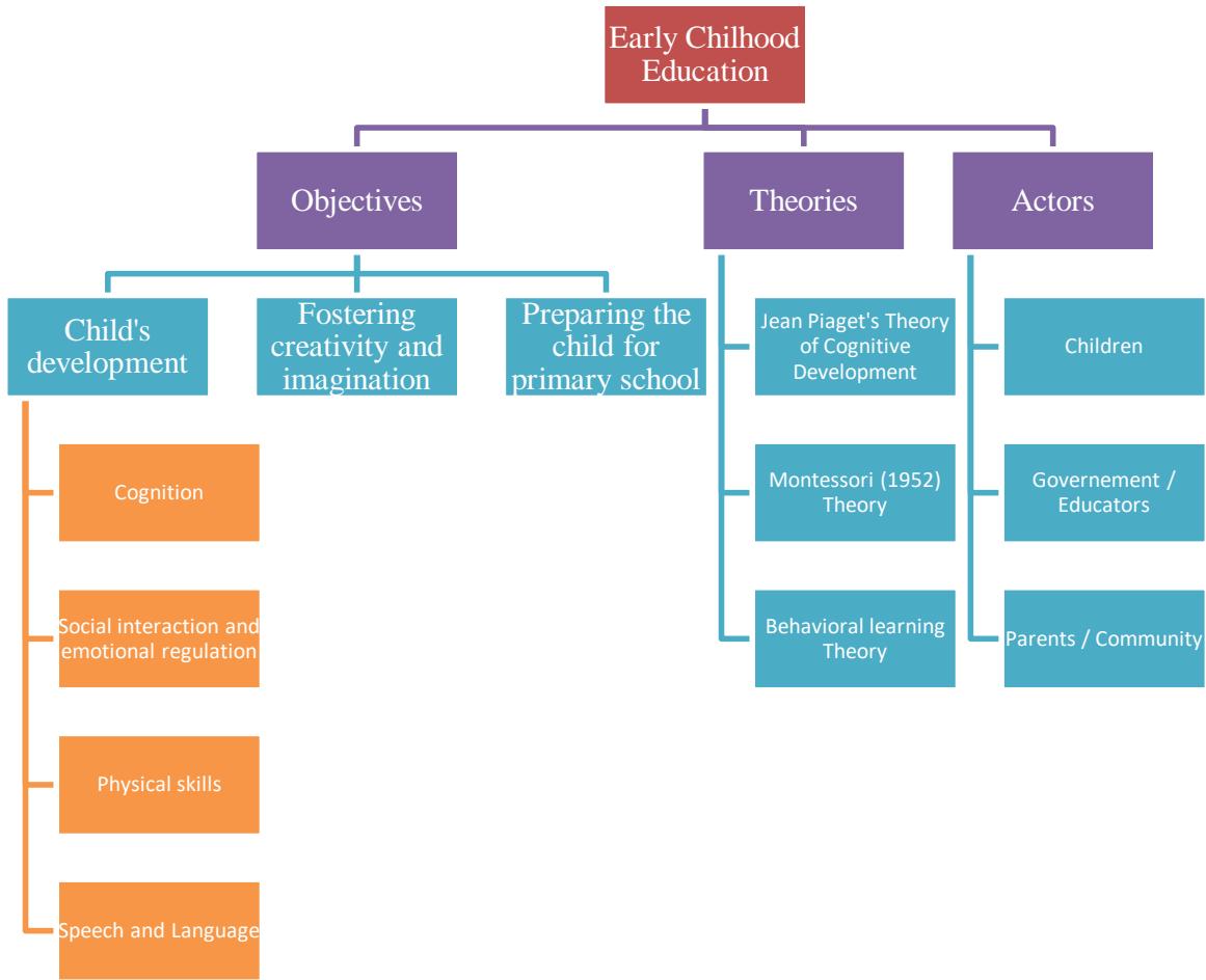 The framework below represents the process in order to have an efficient early childhood education. This diagram is a summary of how a quality childhood education should work. Actors, theories and objectives are listed there with the aim of having a clear vision of what the early childhood education system should be.
