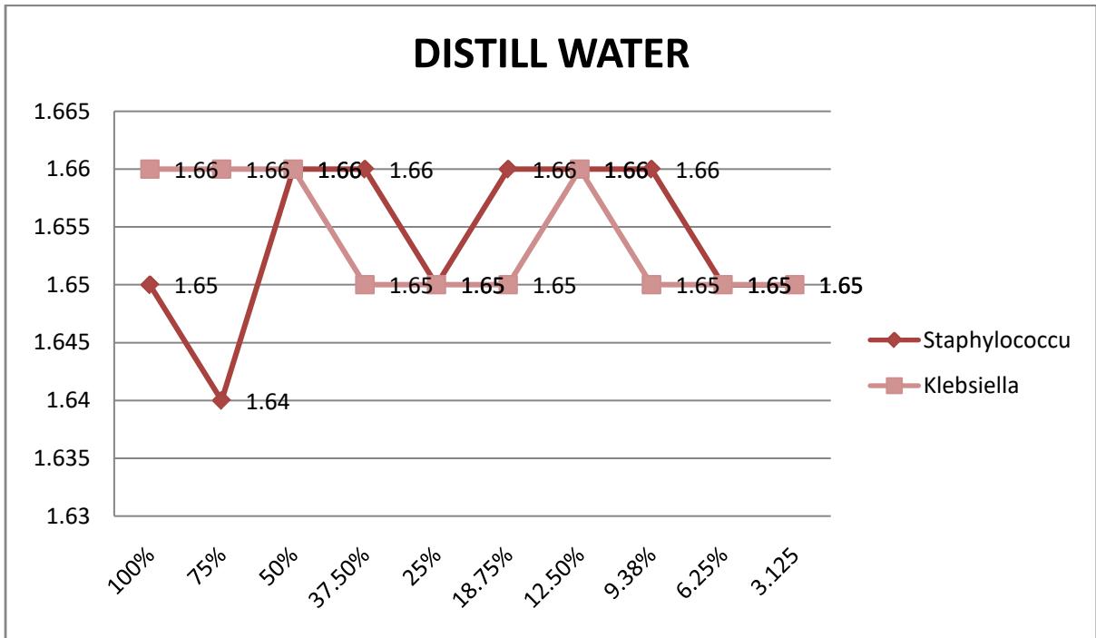 Based on extract with luke-warm water the concentration with stocks of $100\%$, $75\%$ were effective in inhibiting the growth of Staphylococcus without Klebsiella and with stocks of $50\%$ and $25\%$ having bactericidal activity against Staphylococcus with stock of $25\%$ having inhibitory properties as presented on figure 2 below.