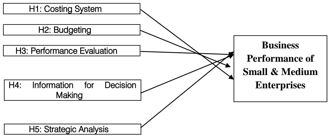 The following article emphases on determining the effects of Management Accounting Practices on Small and Medium sized Enterprises (SME). The SMEs studied in the research belong to the southern part of Bangladesh including Faridpur, Madaripur, Bagherhat, Khulna and Gopalganj. Quantitate research approach has been used and data was collected from 252 SME managers by using a well-structured questionnaire. The sample was selected through random sampling methods. SPSS (Statistical Package for the Social Science), update version was used to analysis the data. The article has introduced multiple regression analysis to identify the relationship between management accounting practices and business performances of an organization. Multiple regressions analysis has been used to measure the impact of the relationship in the research model. The results of regression analysis showed that a positive relationship was exited between management accounting practices and SMEs business performance.